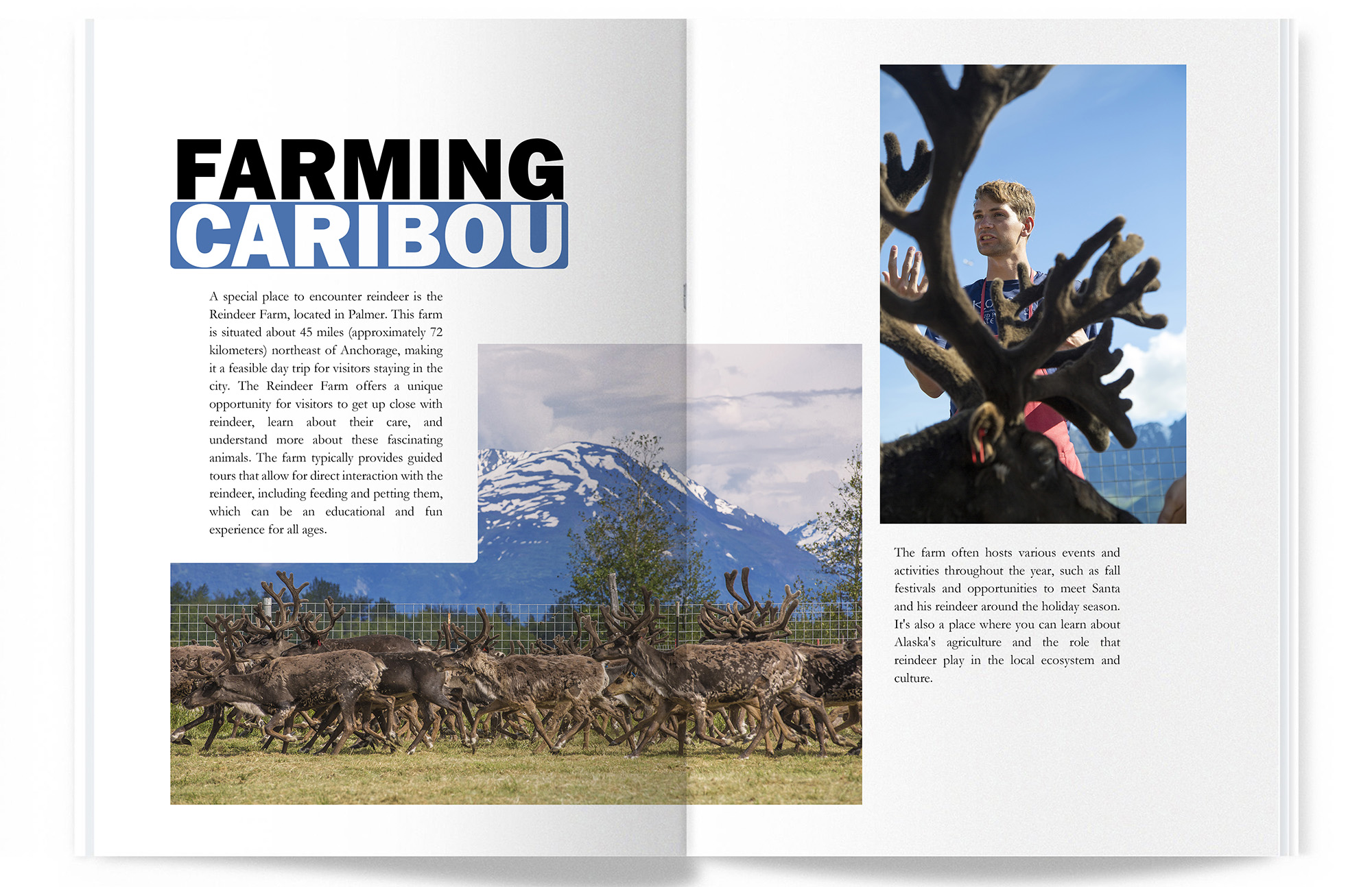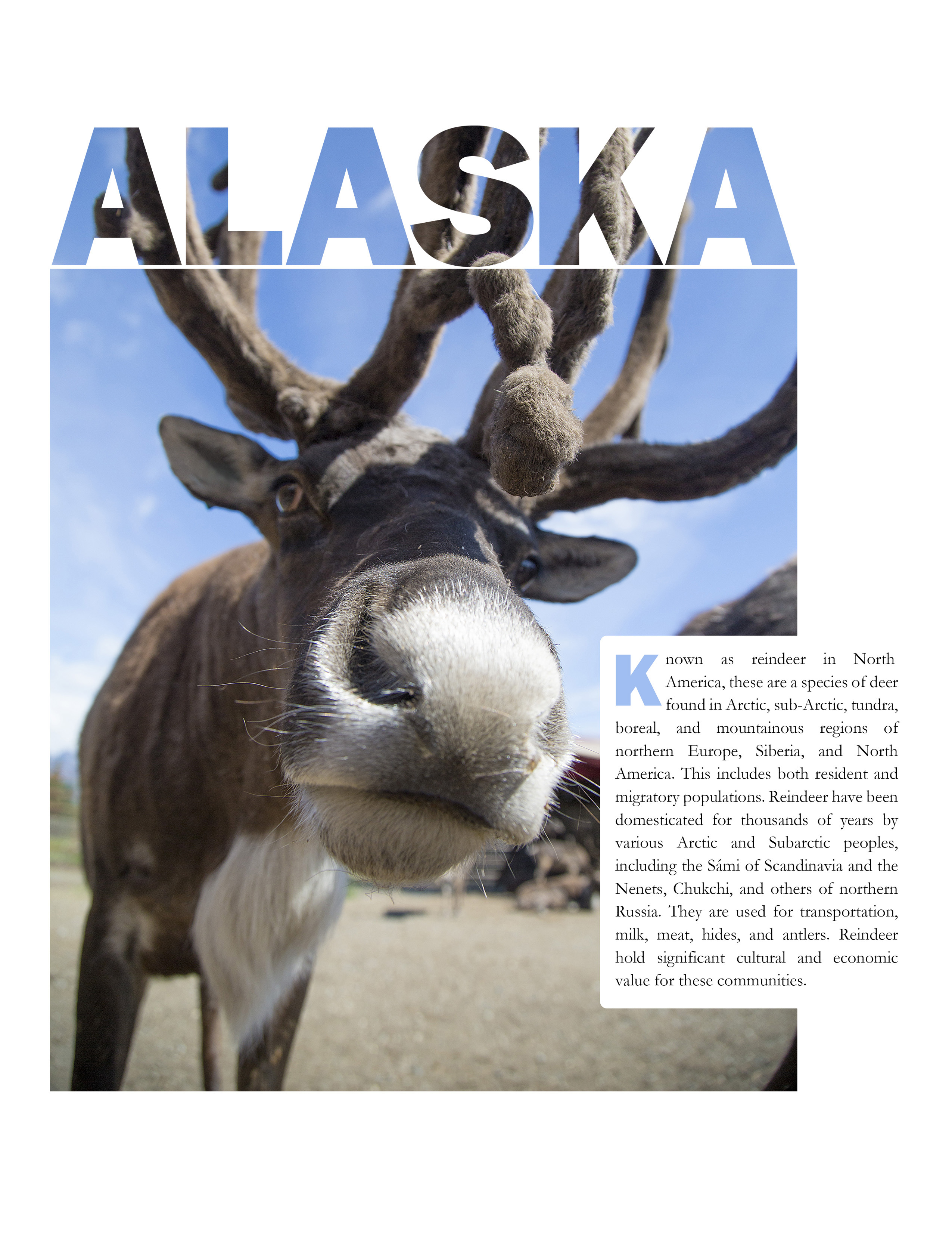 Editorial photographs from the Reindeer Farm in Palmer, Alaska. The farm is a unique and family-run operation that provides a variety of seasonal tours and activities centered around its main attraction: the reindeer.