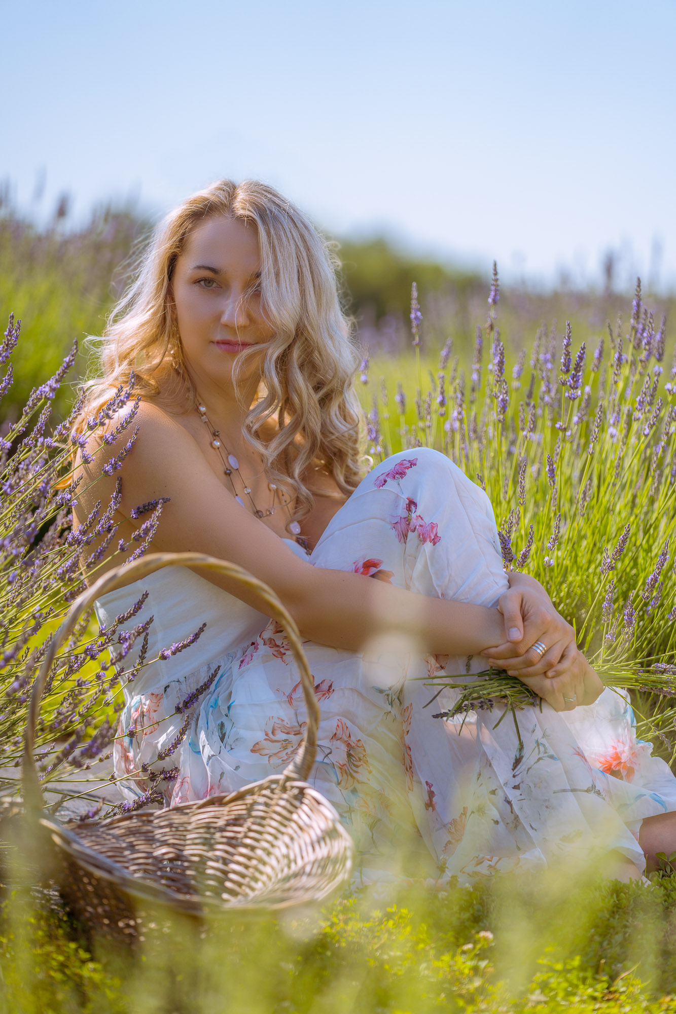 Portraits in a lavendar field. These were created in early afternoon with three tethered speedlites and a shoot-through umbrella.